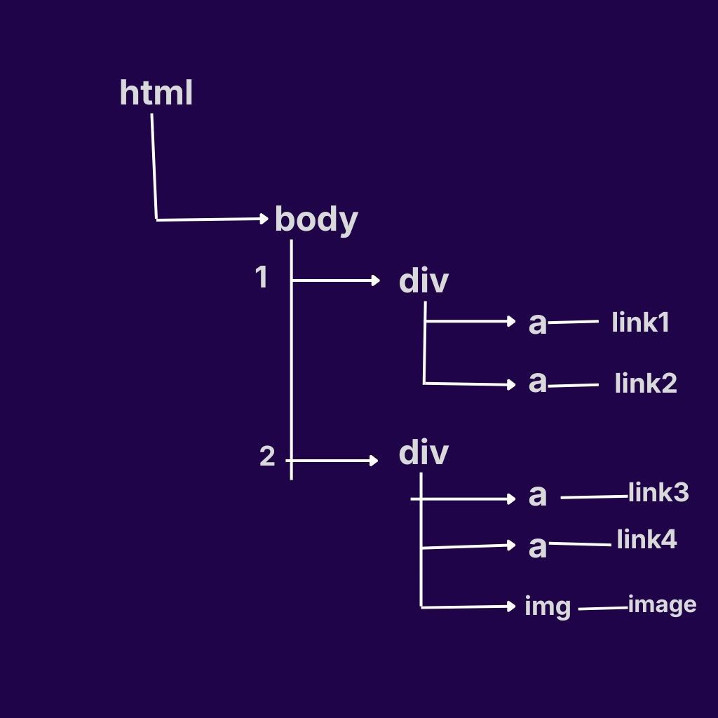 Q. Write the Relative Xpath for link1 in the above html directory of diagram1.